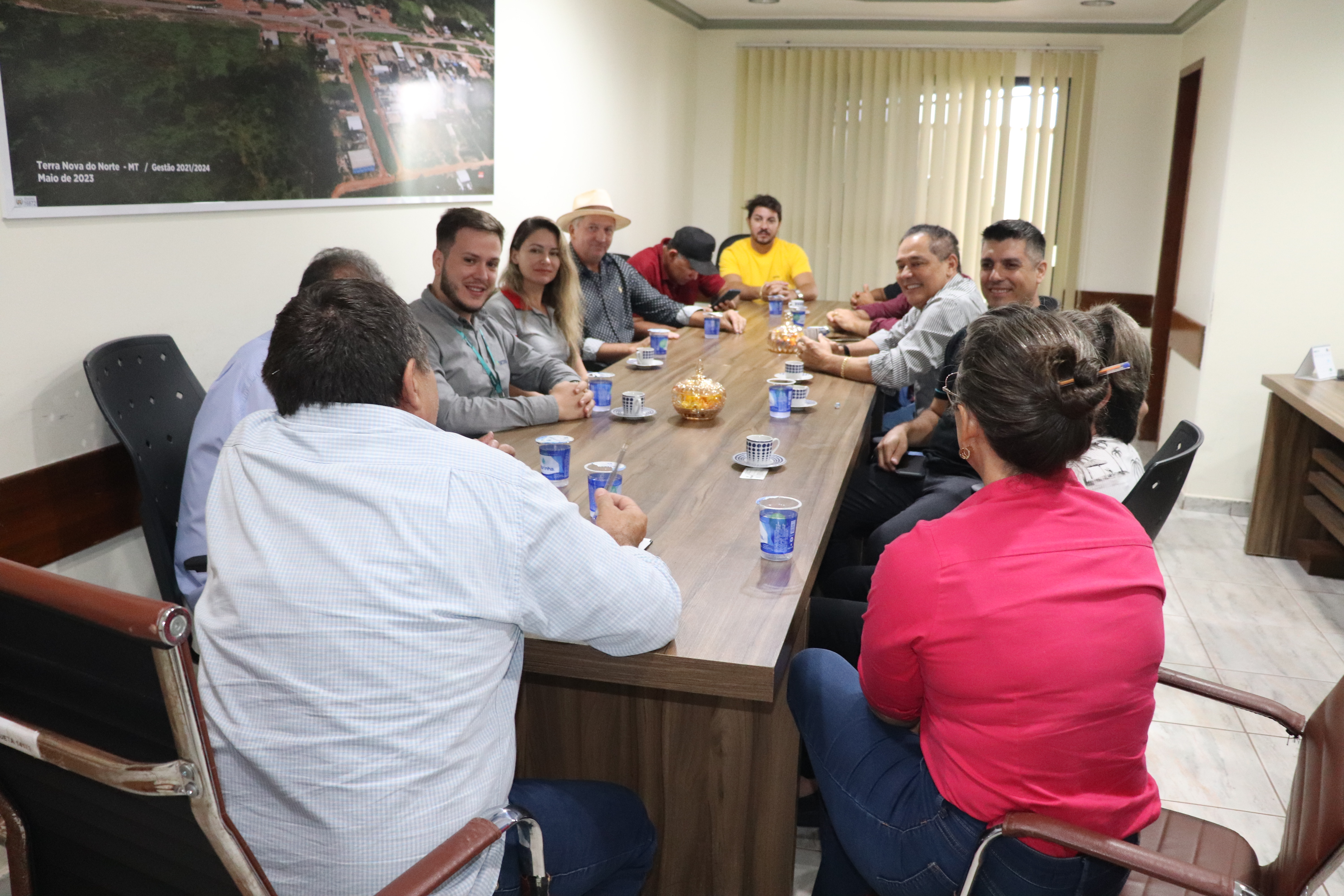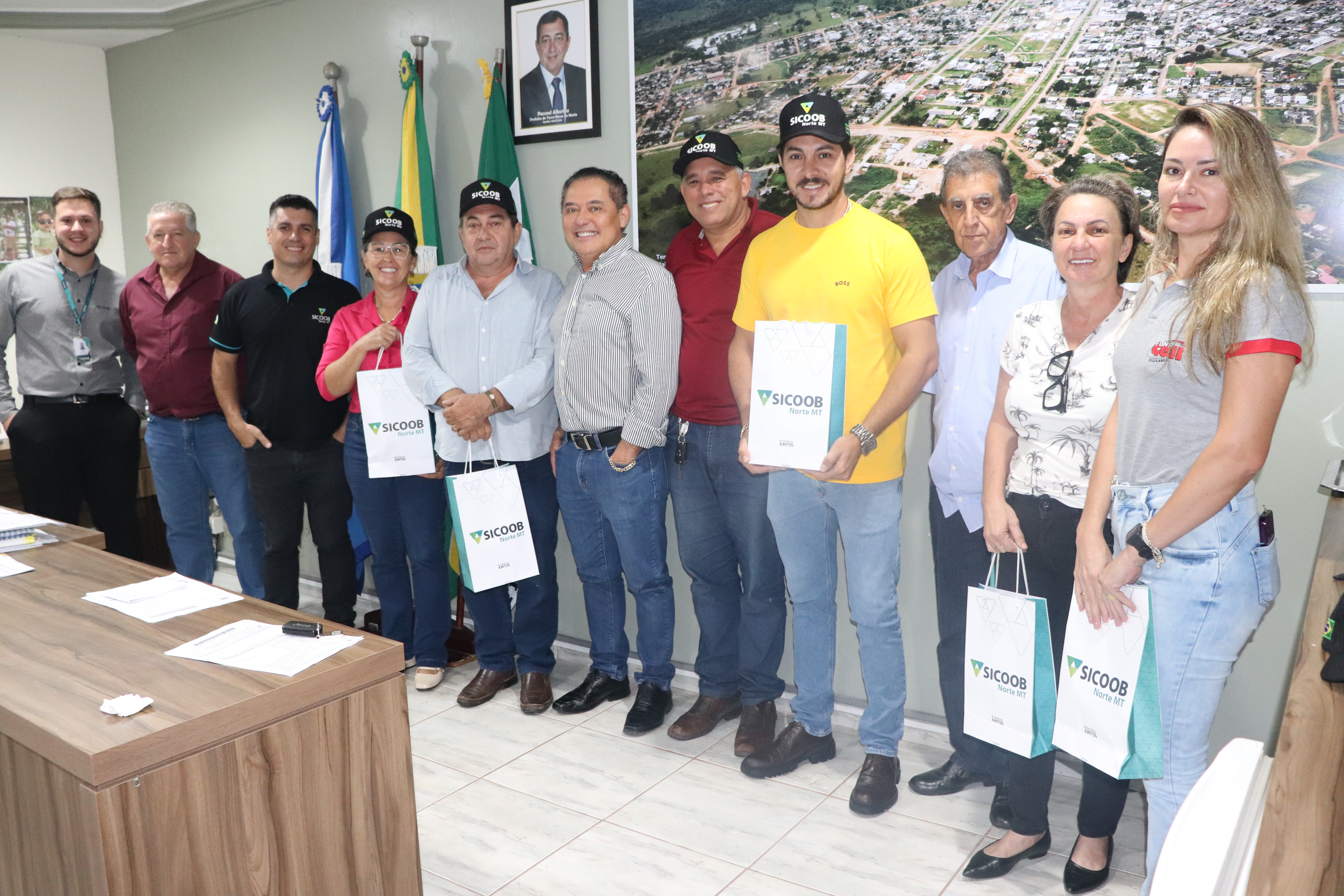 O diretor presidente do Sicoob Norte, Norival Curado, Diretor Comercial Marcio do Nascimento e o Agente de Atendimento Jean Marcos Ribeiro estiveram, na manhã desta segunda-feira, na prefeitura de Terra Nova do Norte, onde se reuniram com o prefeito Pascoal Alberton, vice-prefeita Rose Rizzieri, presidente da Câmara Municipal Oli da Bonfim, demais vereadores, secretários e empresários do município.