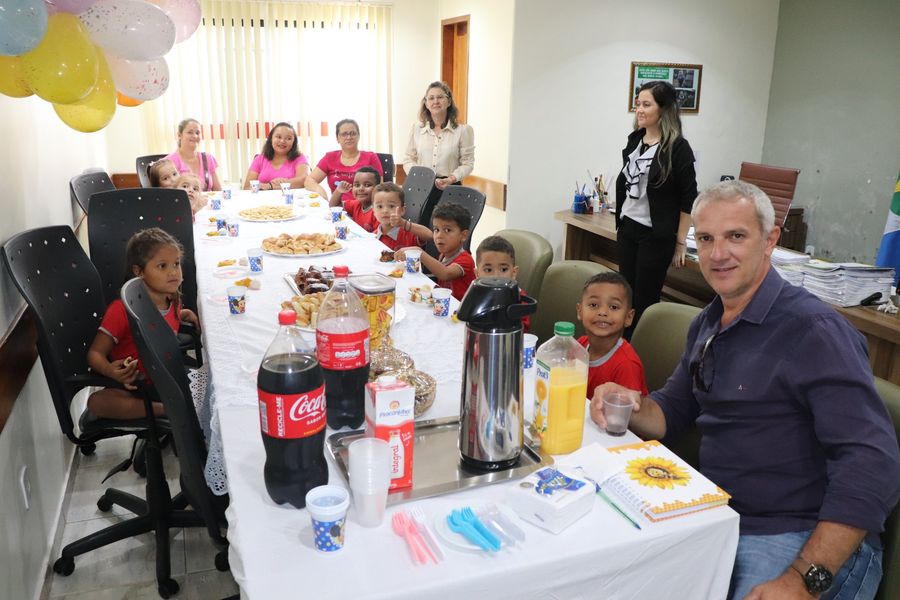 A Professora Maria Aparecida Ferreira Reis, a diretora Jocelaibe e os alunos foram muito bem recebidos na Prefeitura pela vice-prefeita Rose Rizzieri, pelo secretário de educação Reginaldo Marcolan e a coordenadora do Programa União Faz a Vida no município, Silvana Leite com um delicioso café da manhã no gabinete.