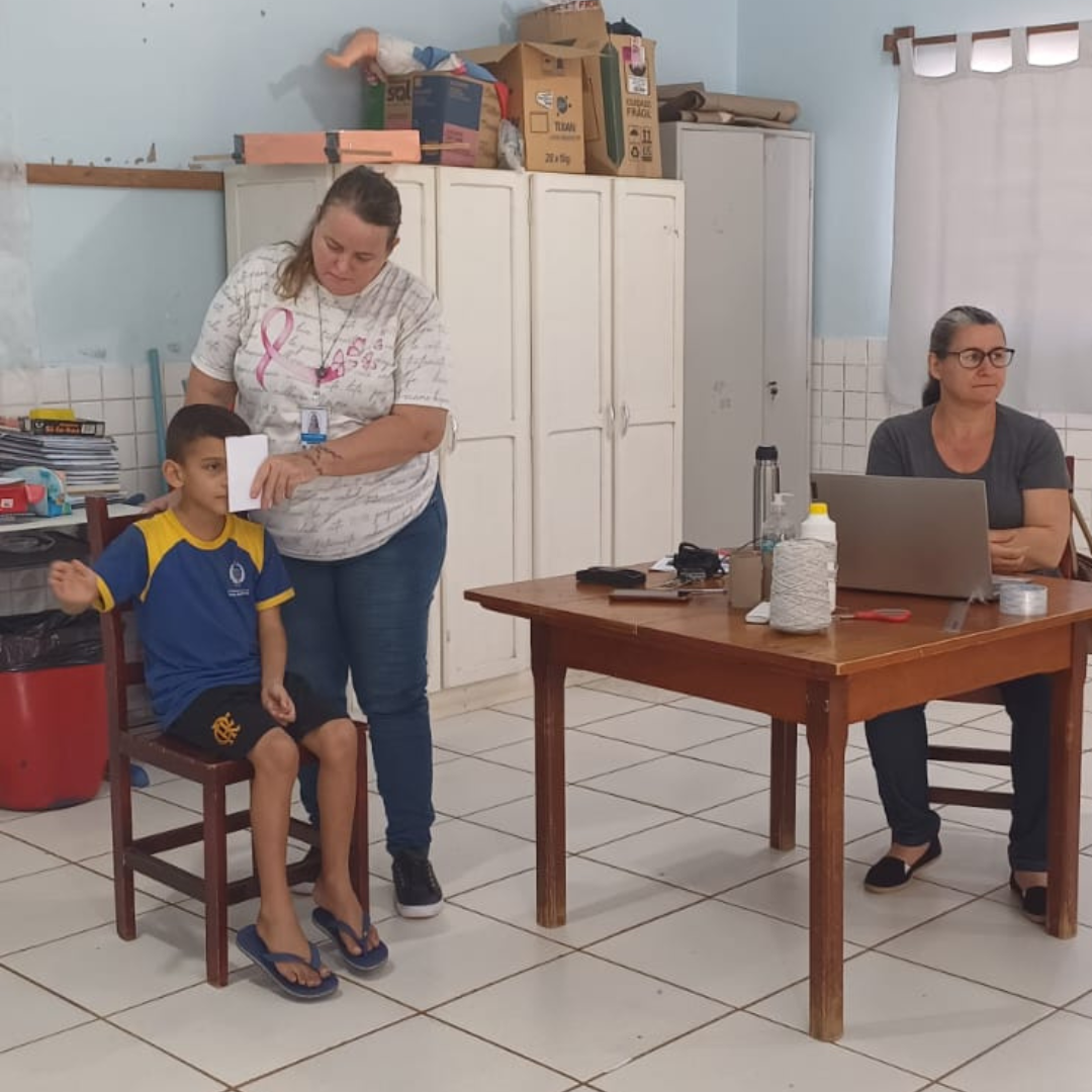Crianças da rede municipal de ensino de Terra Nova do Norte, receberam triagem oftalmológica, por meio do projeto De Olho no Futuro, após a capacitação de uma equipe formada por membros das secretarias de Educação e Saúde do município, em parceria com o Instituto Dois Pinheiros de Sinop.