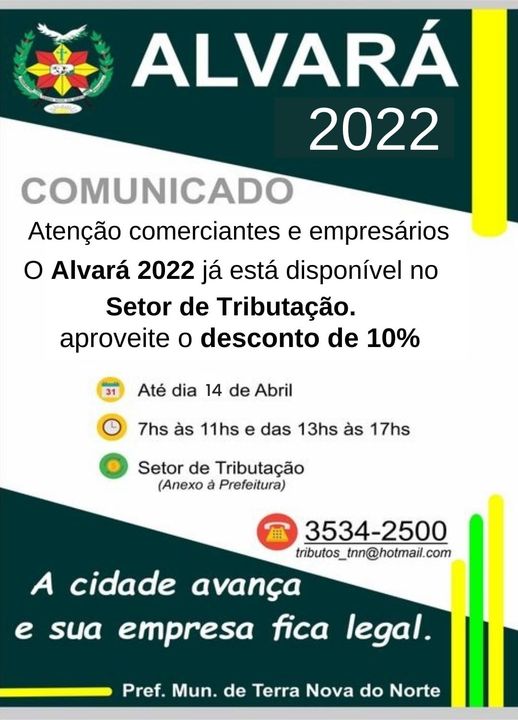 O Alvará 2022 já está disponível no Setor de Tributação.