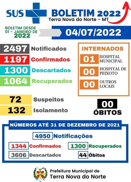 A segunda-feira, 04 de julho, foi um dia onde o município de Terra Nova do Norte registrou em seu boletim de casos um total de 132 pessoas contaminadas com o vírus e outras 72 sob observação sendo consideradas suspeitas.