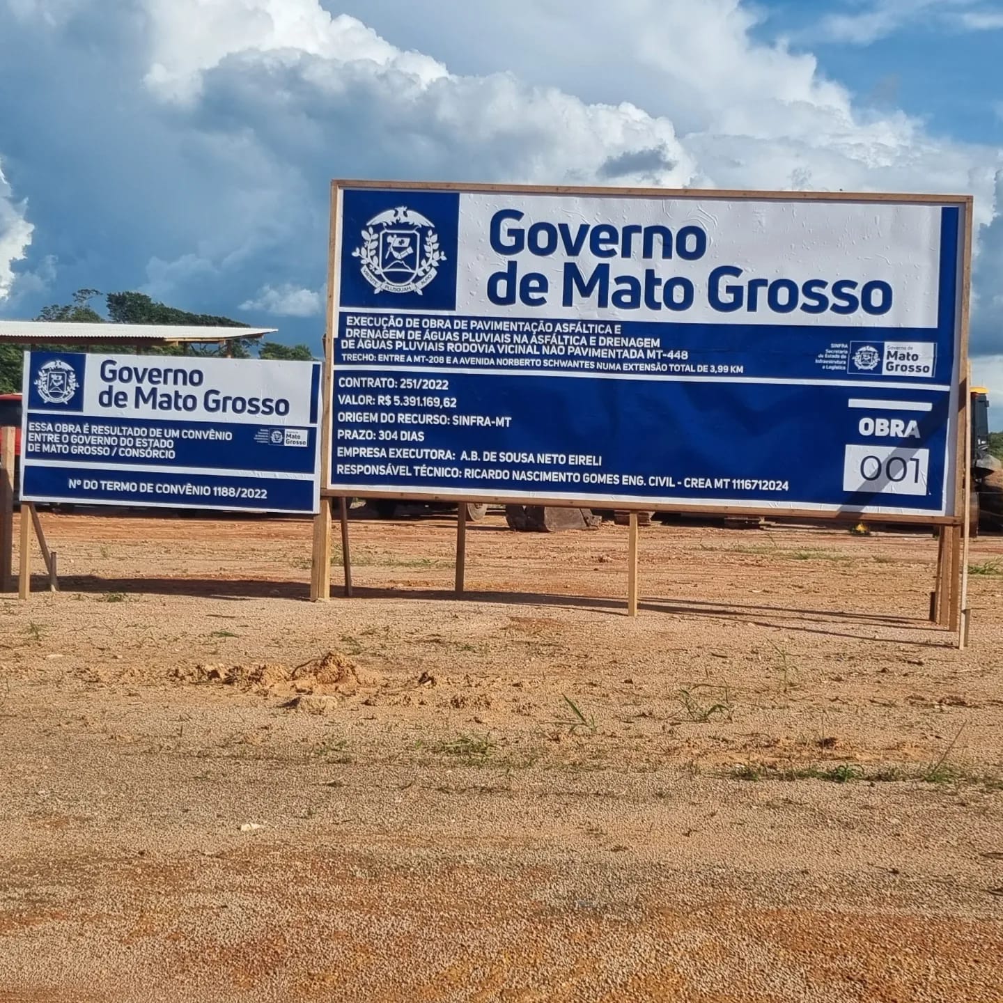 Serão mais de R$ 5 milhões nesta obra considerada de grande importância para o progresso do município, principalmente porque dá livre acesso entre a MT-208 até o centro da cidade, passando pelo aeroporto e acesso ao cemitério municipal.