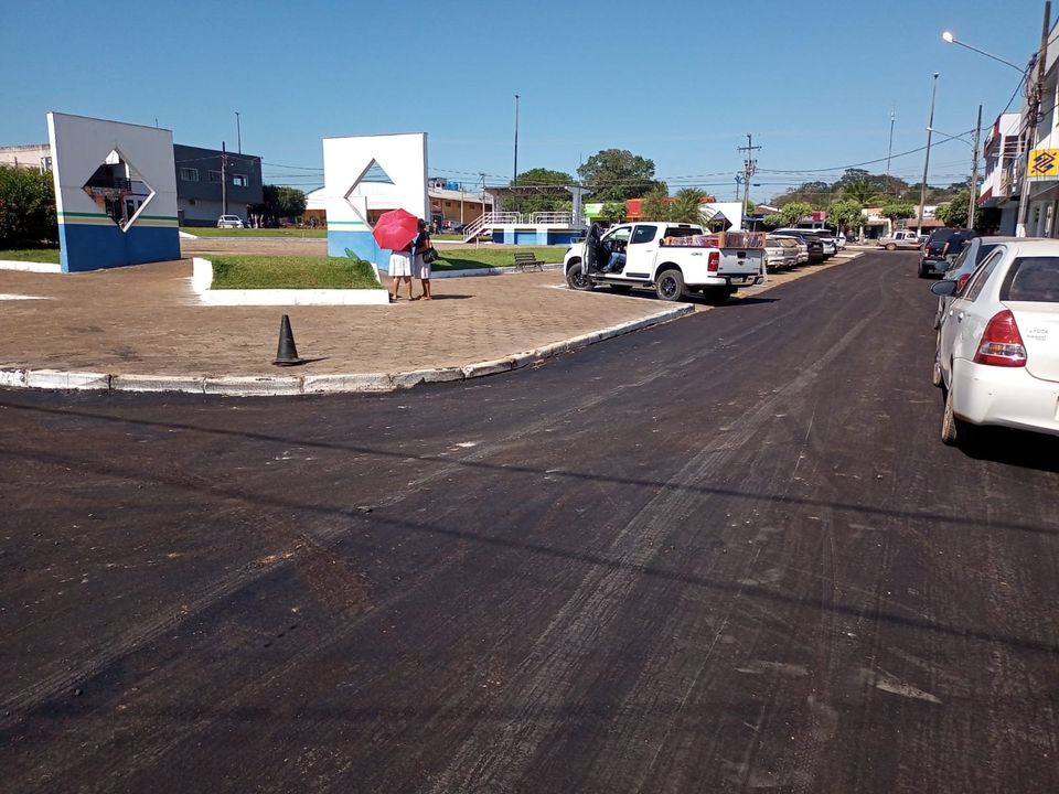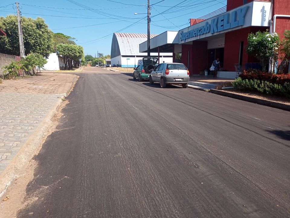 Continuidade de aplicação de lama asfáltica no centro de Terra Nova