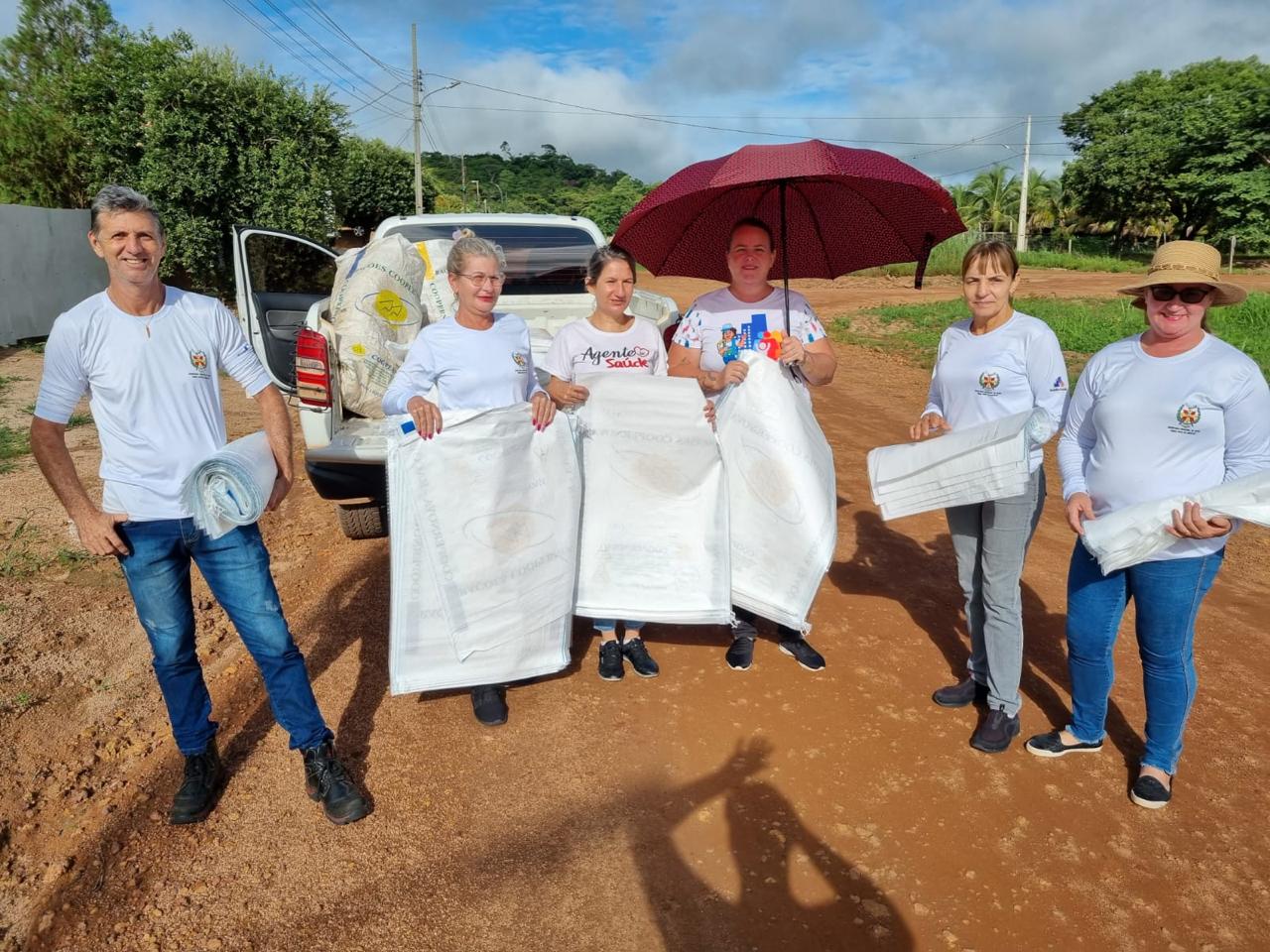 As equipes da Secretaria de Saúde, Vigilância Sanitária, Vigilância em Saúde e os agentes estiveram trabalhando na distribuição de sacos de lixo para ajudar no serviço de limpeza e coleta de entulhos.