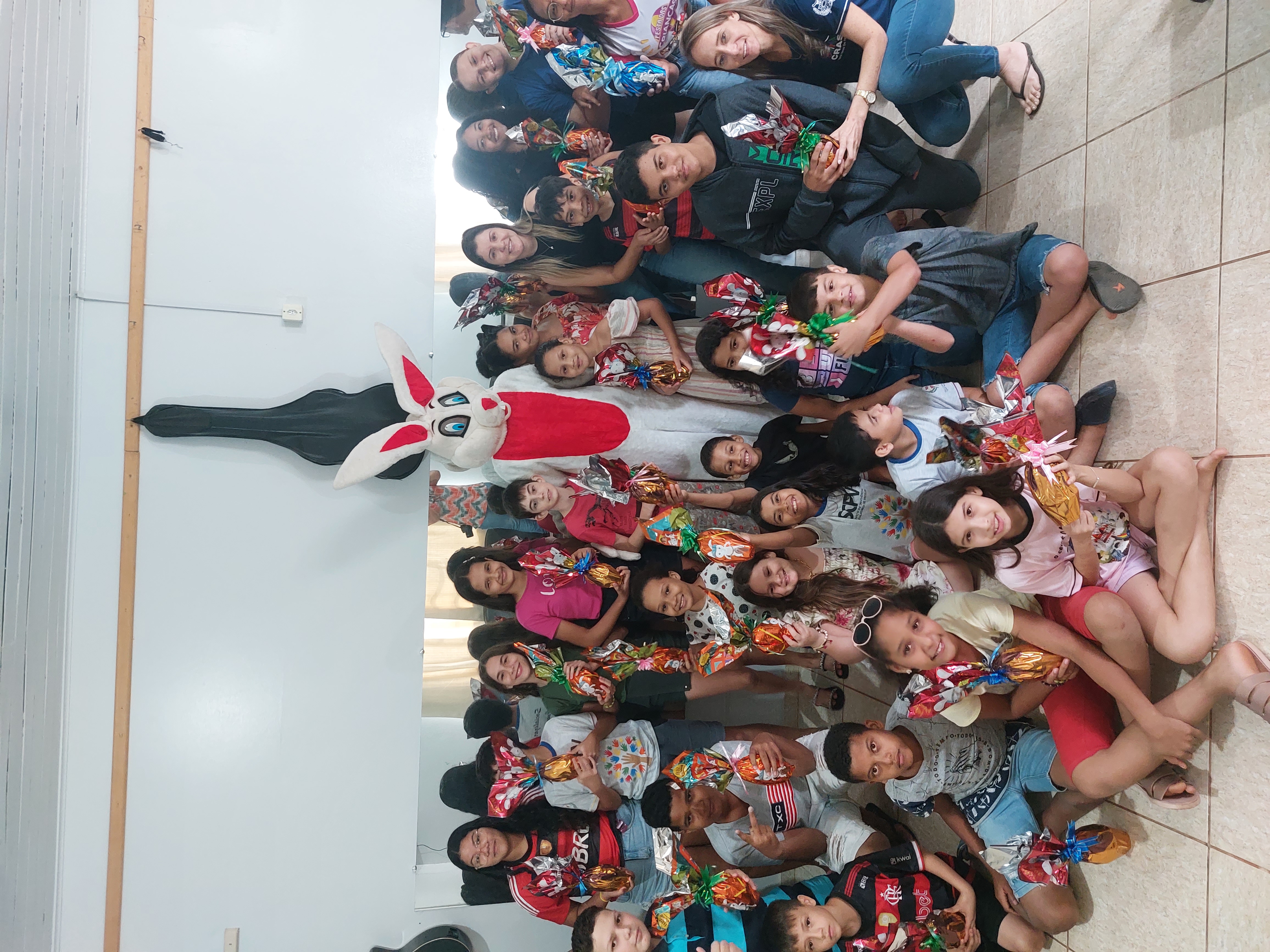Com muito carinho e dedicação, foram entregues ovos de chocolate para cada uma das crianças, promovendo um momento de alegria, afeto e valorização. A ação se tornou ainda mais especial pela presença do coelhinho da páscoa, que esteve participando das entregas e interagindo com as crianças.