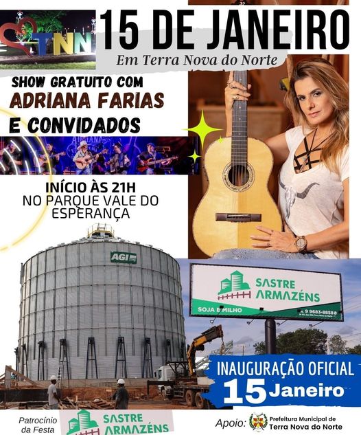 Dia 15 tem Show Nacional em Terra Nova com Adriana Farias para comemorar a inauguração do Armazém Sastre