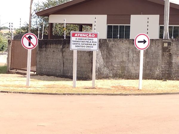 Foram instaladas placas de sinalização orientando novo sentido das ruas Três Passos e Santa Catarina em Terra Nova