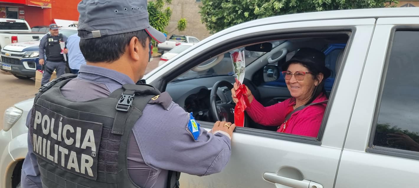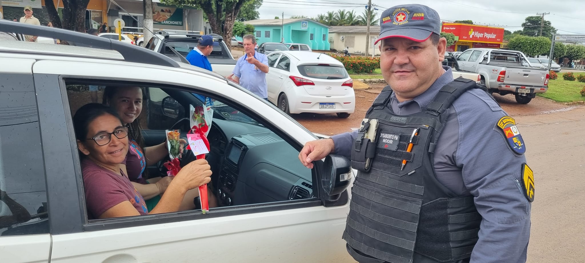 Polícia Militar e Rotary Clube de Terra Nova do Norte fazem entrega de flores no Dia Internacional da Mulher