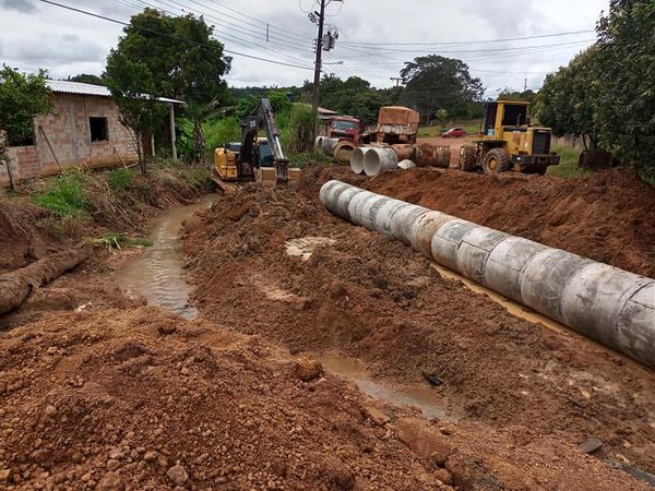 A drenagem da Rua Ambava, esquina com a Rio de Janeiro no Bairro Vista Alegre já começou e as máquinas trabalham num ritmo acelerado para aproveitar o tempo e conciliar com outras obras em andamento no município.