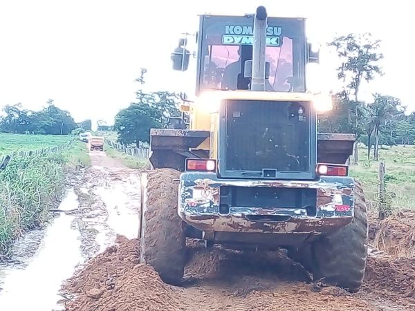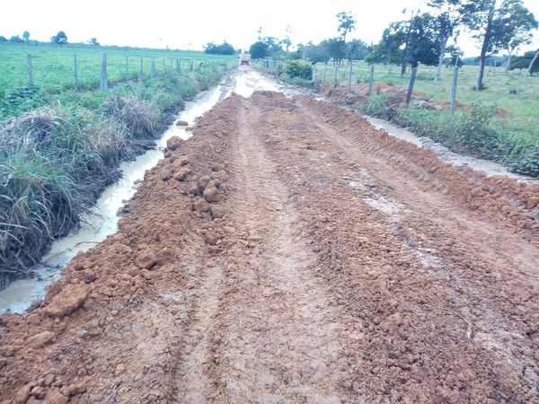 Manutenção de estrada com recuperação de atoleiro na região da Linha Bandeirantes, mais de 13 cargas de cascalho e garantindo acesso aos moradores.