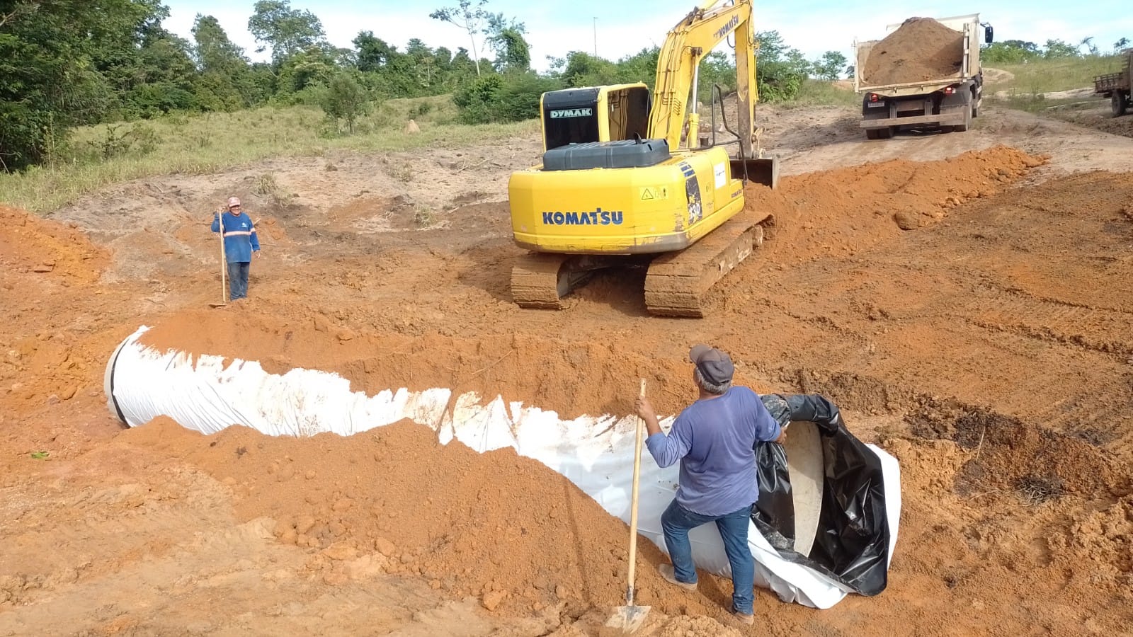 Secretaria de obras realiza manutenção em bueiro na Estrada Zé da Guia, interior de Terra Nova do Norte.