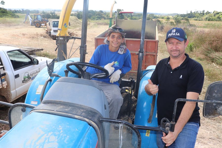 Secretário de Agricultura Anderson Tomaselli acompanhando o trabalho do corte de milho do Programa Silagem para Todos em parceria com a Coopernova