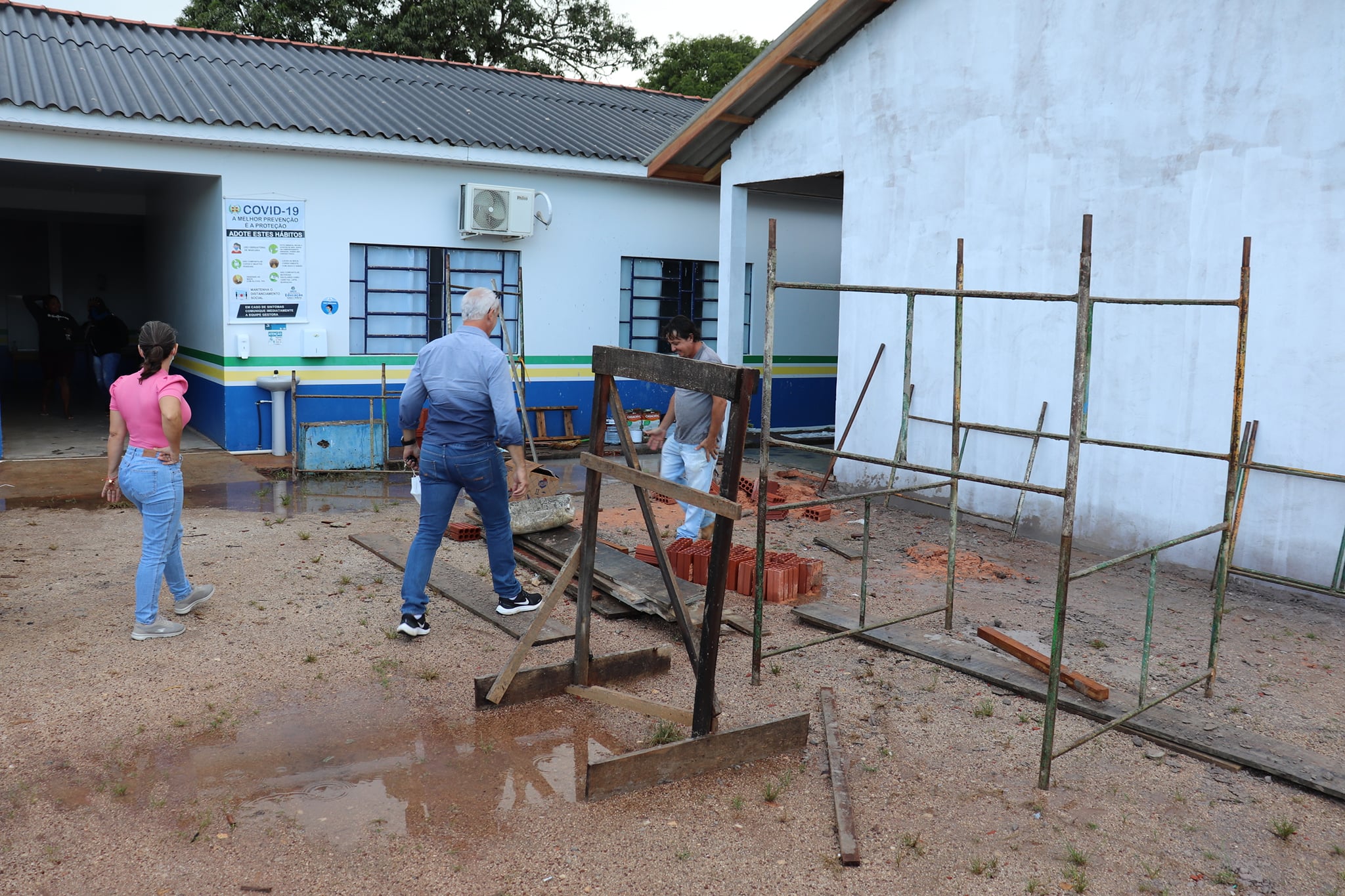 Secretário de educação e vice-prefeita de Terra Nova fazem visita para conferir os últimos detalhes da obra de reforma da Escola da 9ª Agrovila