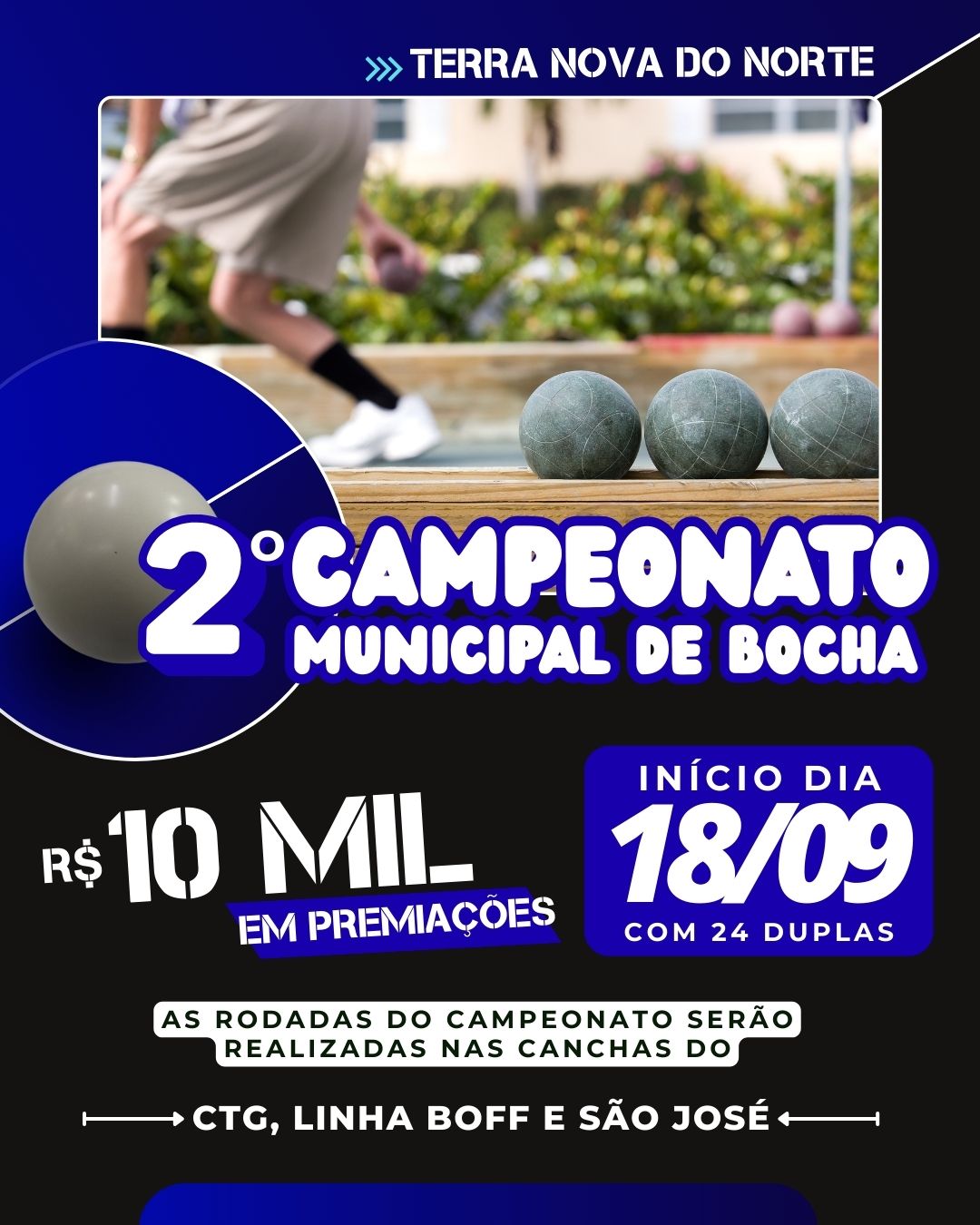 O esporte tradicional ganha mais uma vez destaque em Terra Nova do Norte com a realização do 2º Campeonato de Bocha Rolada, que terá início nesta quinta-feira, 18 de setembro. A competição contará com 24 duplas inscritas e promete ser um grande evento de integração e disputa saudável.