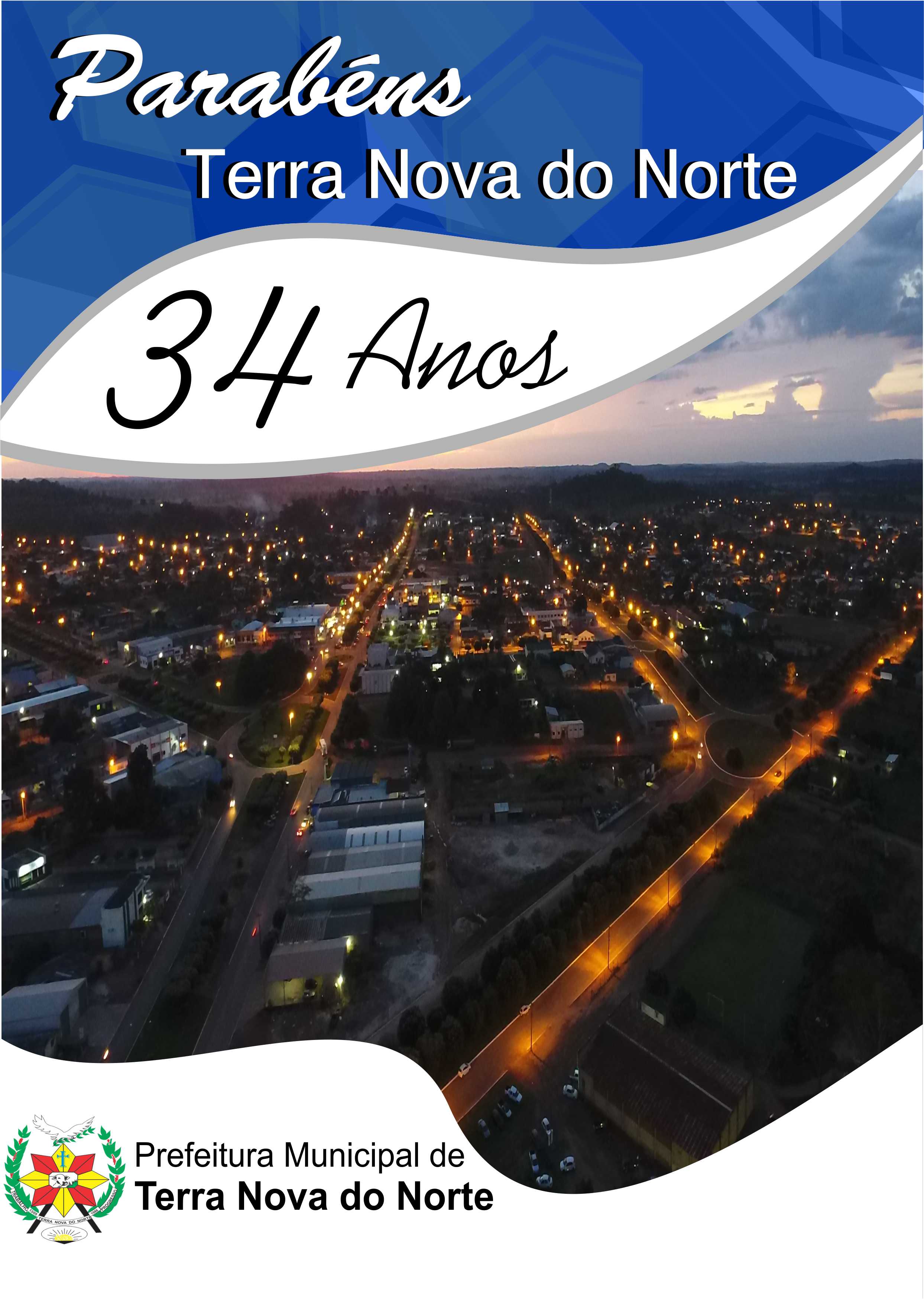 Mas, em virtude desse momento que estamos vivendo de combate ao coronavírus, e por medidas de segurança não podemos realizar eventos em nossa cidade, não podemos estar juntos para comemorar e celebrar mais um aniversário da cidade. Vamos deixar as comemorações um pouco mais para frente, assim que este momento for superado, quando tudo passar voltaremos a nos abraçar, voltaremos a festejar, afinal de contas o nosso povo merece ser feliz. Parabéns Terra Nova do Norte por seus 34 anos de emancipação político administrativa...