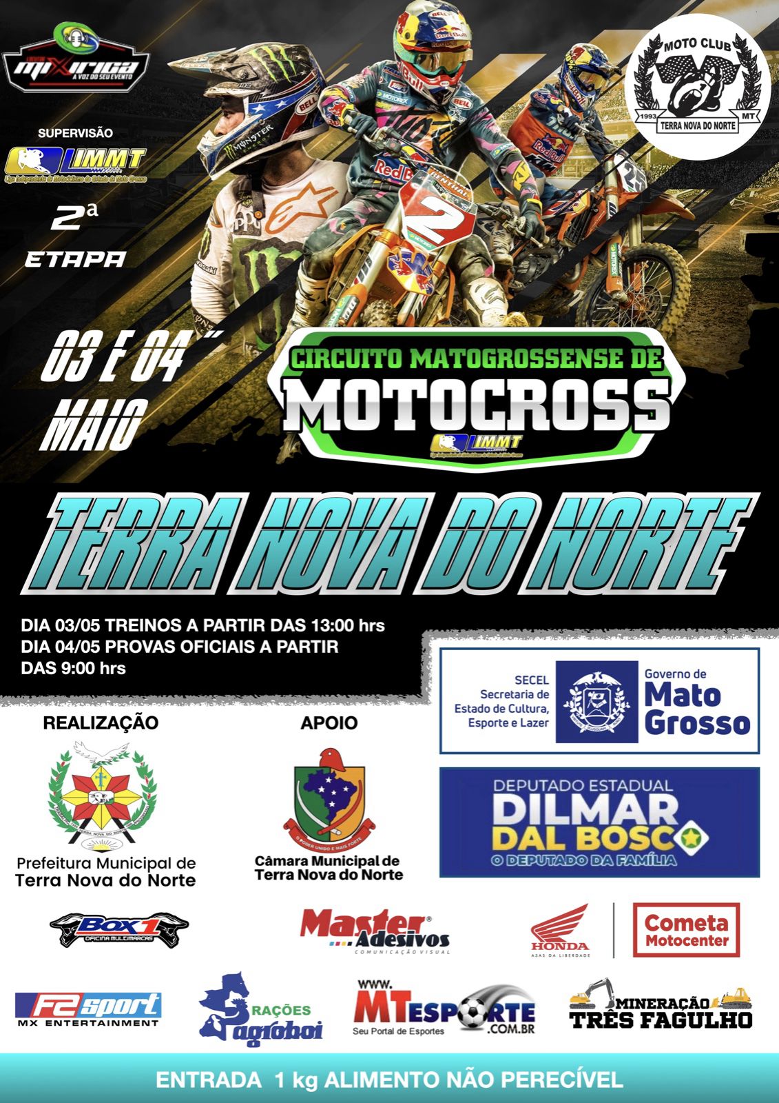 A emoção das pistas vai invadir Terra Nova do Norte neste domingo dia 04 de Maio, com a realização da 2ª etapa do Circuito Matogrossense de Motocross. O município será o palco da disputa entre os melhores pilotos de Mato Grosso e representantes dos estados do Pará e Mato Grosso do Sul.